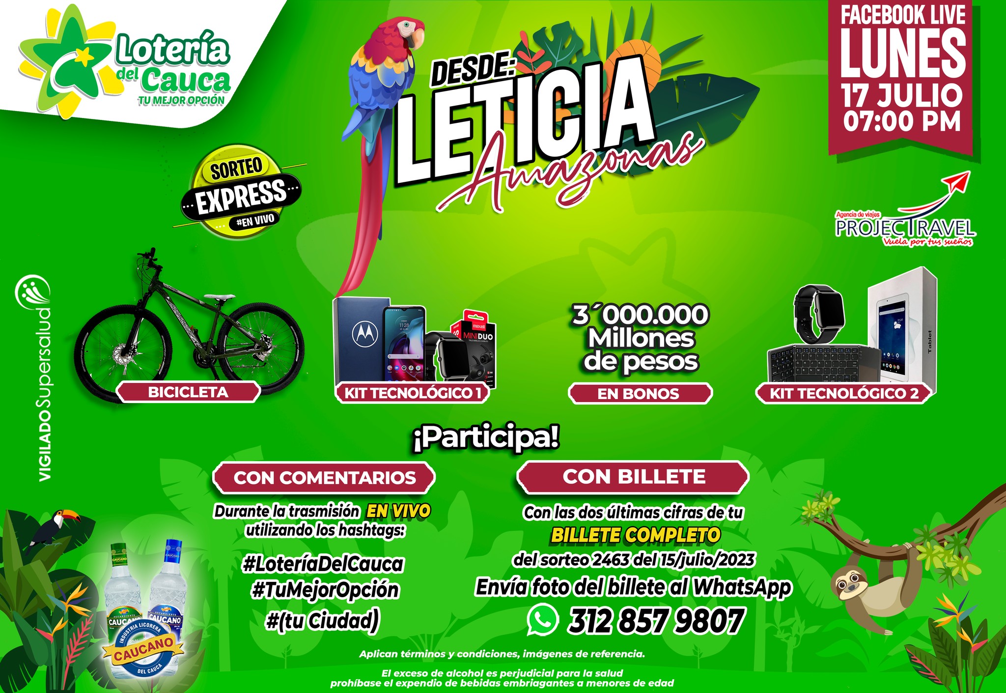 !Vuelve el #SorteoExpress de tu Lotería del Cauca! este lunes 17 de Julio estaremos #EnVivo desde Leticia (Colombia) Amazonas.